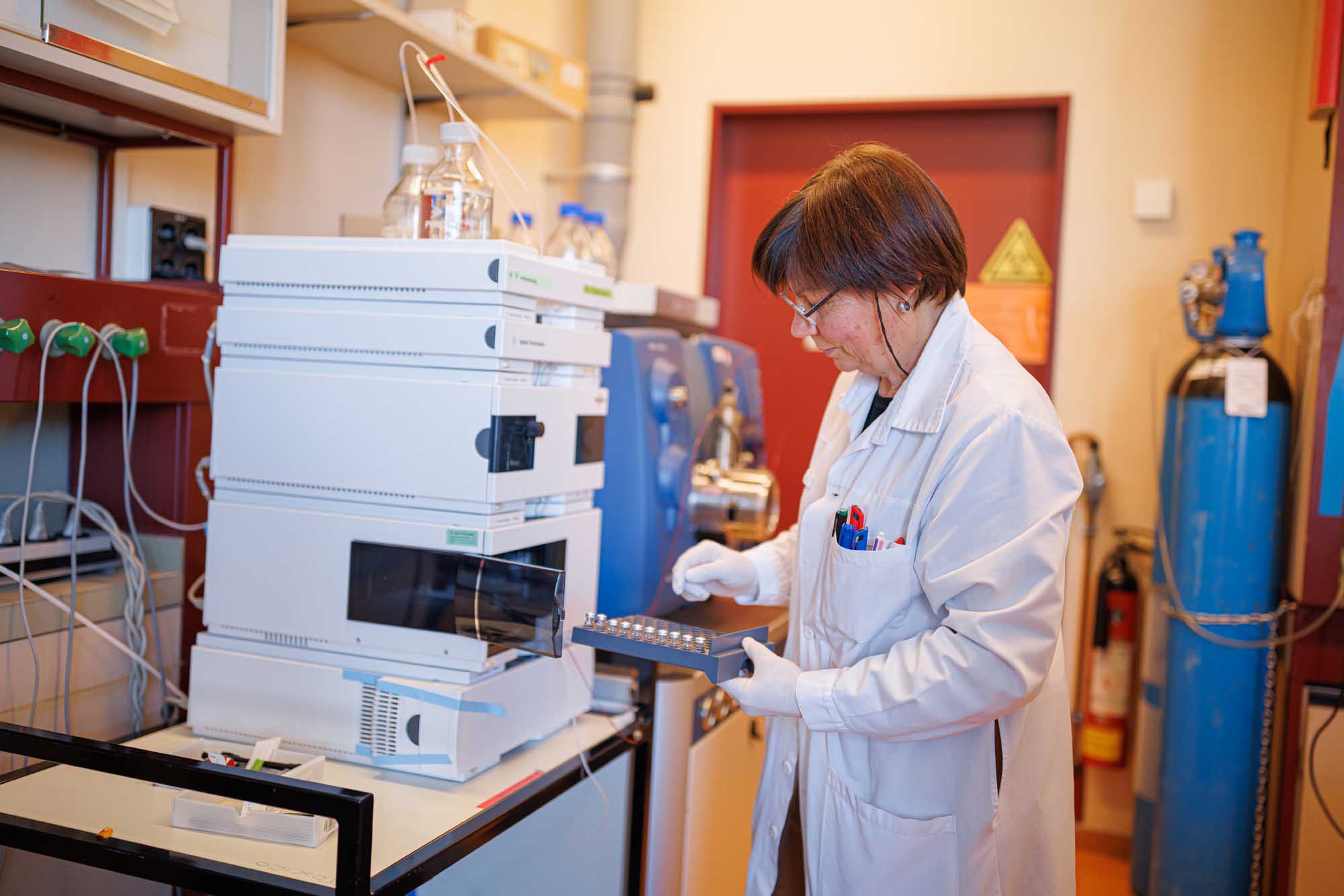 Attention, ça devient un peu barbare. Deux appareils de chromatographie liés à des spectromètres de masse — dont la valeur peut atteindre 500’000 francs — comparent ensuite les petits flacons préparés par la technicienne à d’autres, contenant les molécules de référence, seize au total. Molécules de référence fabriquées et fournies par des entreprises de chimie, dont les prix sont plus élevés que sur le marché noir.