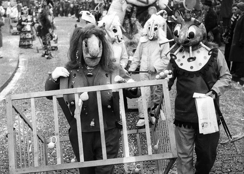 Verspottet: Iris von Roten als Fasnachts-Sujet in Basel 1959.