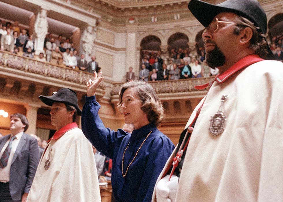 Elisabeth Kopp bei ihrer Vereidigung zur Bundesrätin.